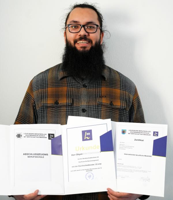 Bei der offiziellen Zeugnisübergabe wurde noch einmal deutlich, welch außergewöhnliche Leistung die beiden erbracht haben. Von 119 Schülerinnen und Schülern zählten Denise und Dhyan zu den 19 Jahrgangsbesten und erreichten in verkürzter Ausbildungszeit den beeindruckenden Notendurchschnitt 1,0!
