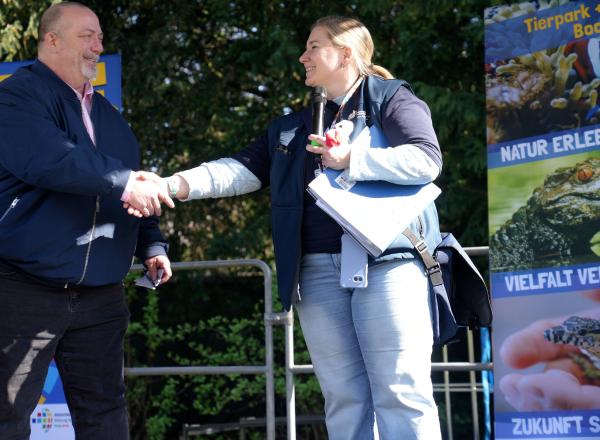 Foto©Tierpark_Bochum_2: Eröffnung des Aktionstages durch Bezirksbürgermeister Holger Dünnebacke und Organisatorin Gina Maaßen