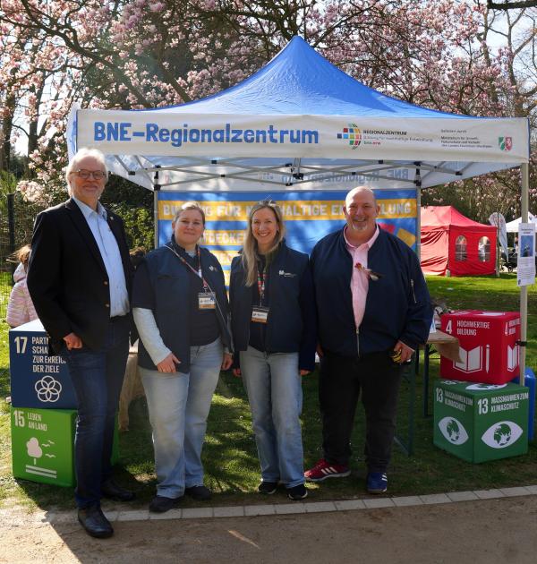 Foto©Tierpark_Bochum_4: v.l.: Zoodirektor Ralf Slabik, Organisatorin Gina Maaßen, Abteilungsleiterin Zoo- und Museumspädagogik Judith Becker, Bezirksbürgermeister Holger Dünnebacke